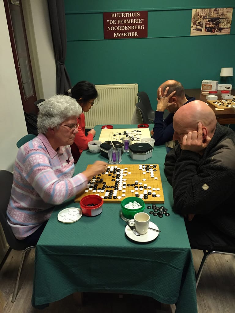Ditmaal reisden maar liefst zes Apeldoornse spelers naar Deventer af, en samen met zes Deventer tegenstanders én onze vier nieuwe leden zorgde dat voor een groep van maar liefst 16 spelers, allemaal druk in de weer met het mooiste spel ter wereld. En er werd ook nog Go gespeeld.