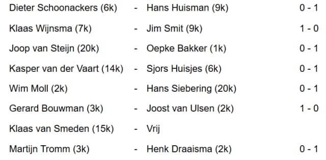 | 13 | Klaas van Smeden (15k) | 1 1/2 | 13 |